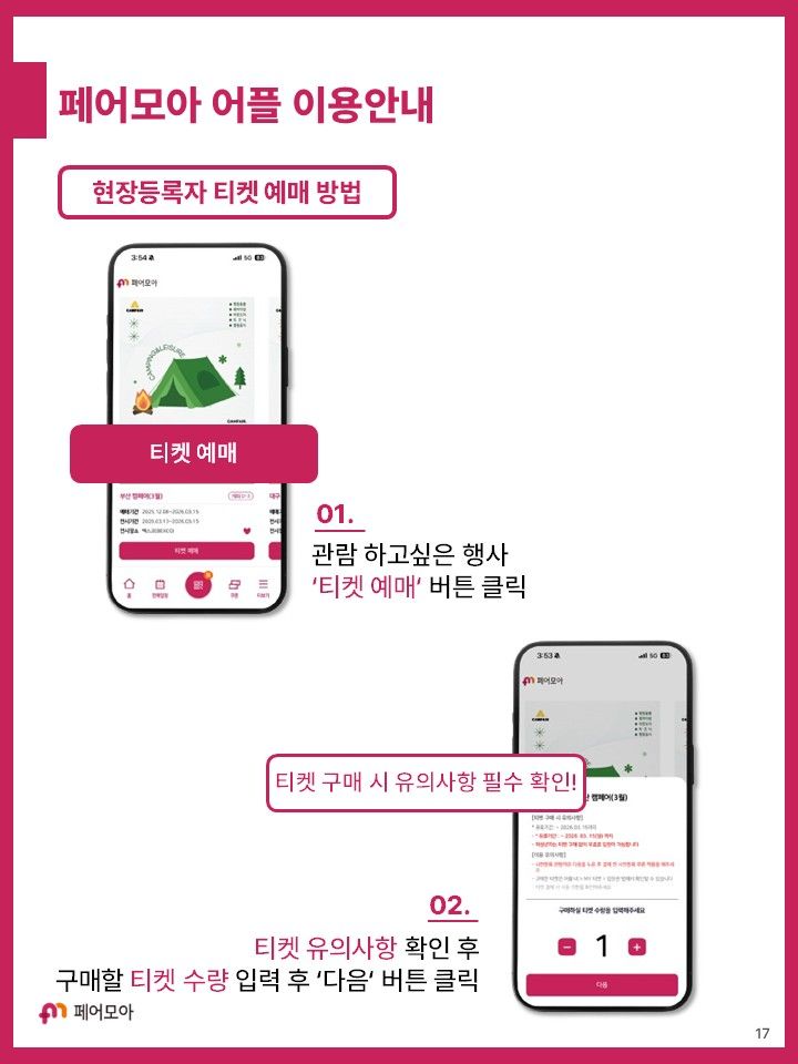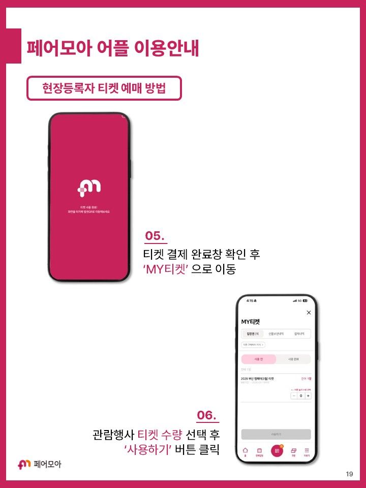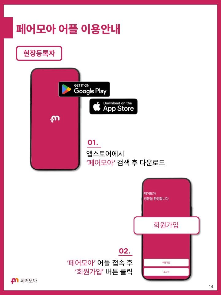 부산캠페어 현장등록자 대상 페어모아 어플 이용 안내